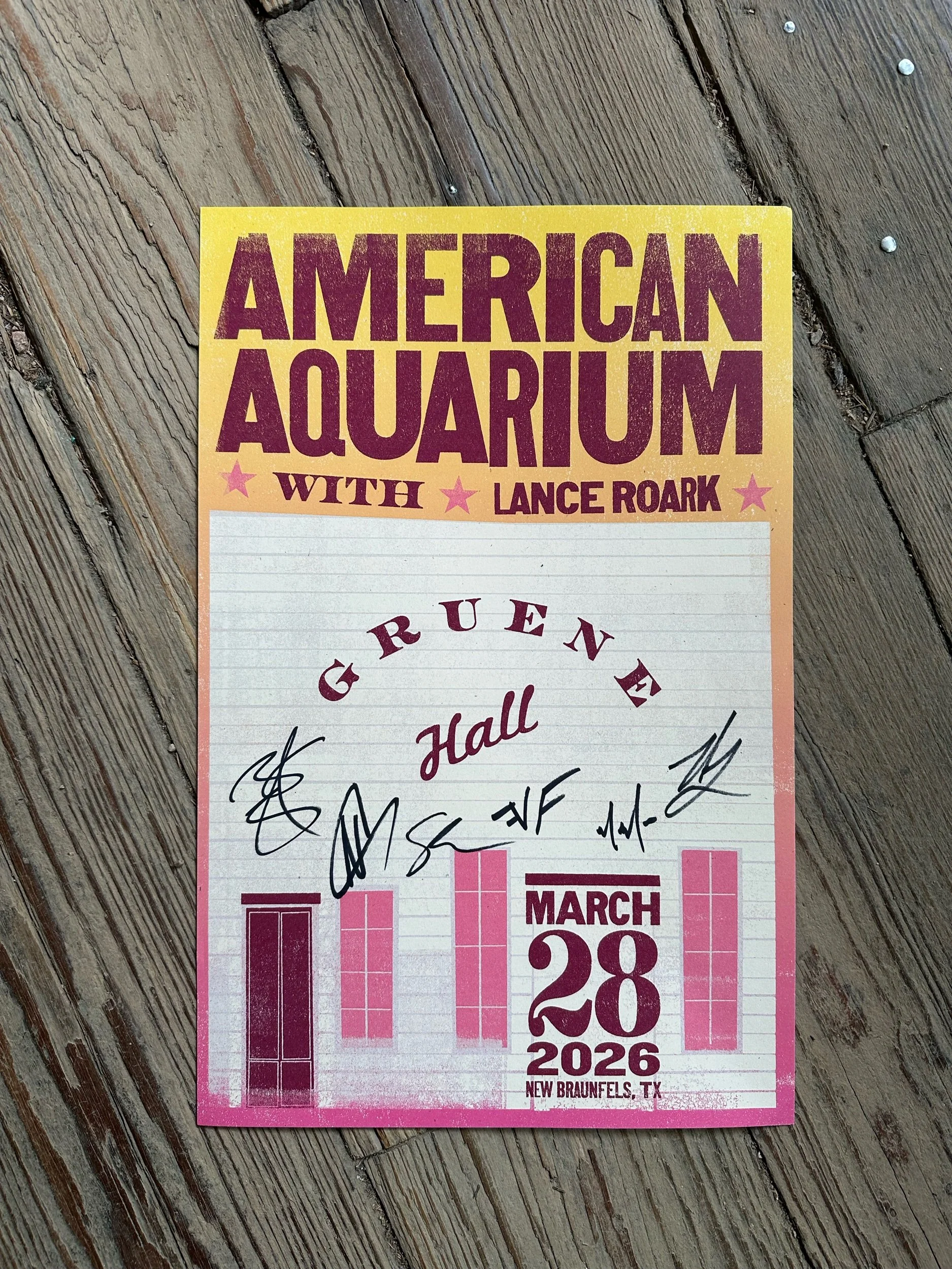 Store › New Braunfels,TX-3/28/26 (signed by band) Image 1 of 1 New Braunfels,TX-3/28/26 (signed by band) $20.00 Add To Cart Added!